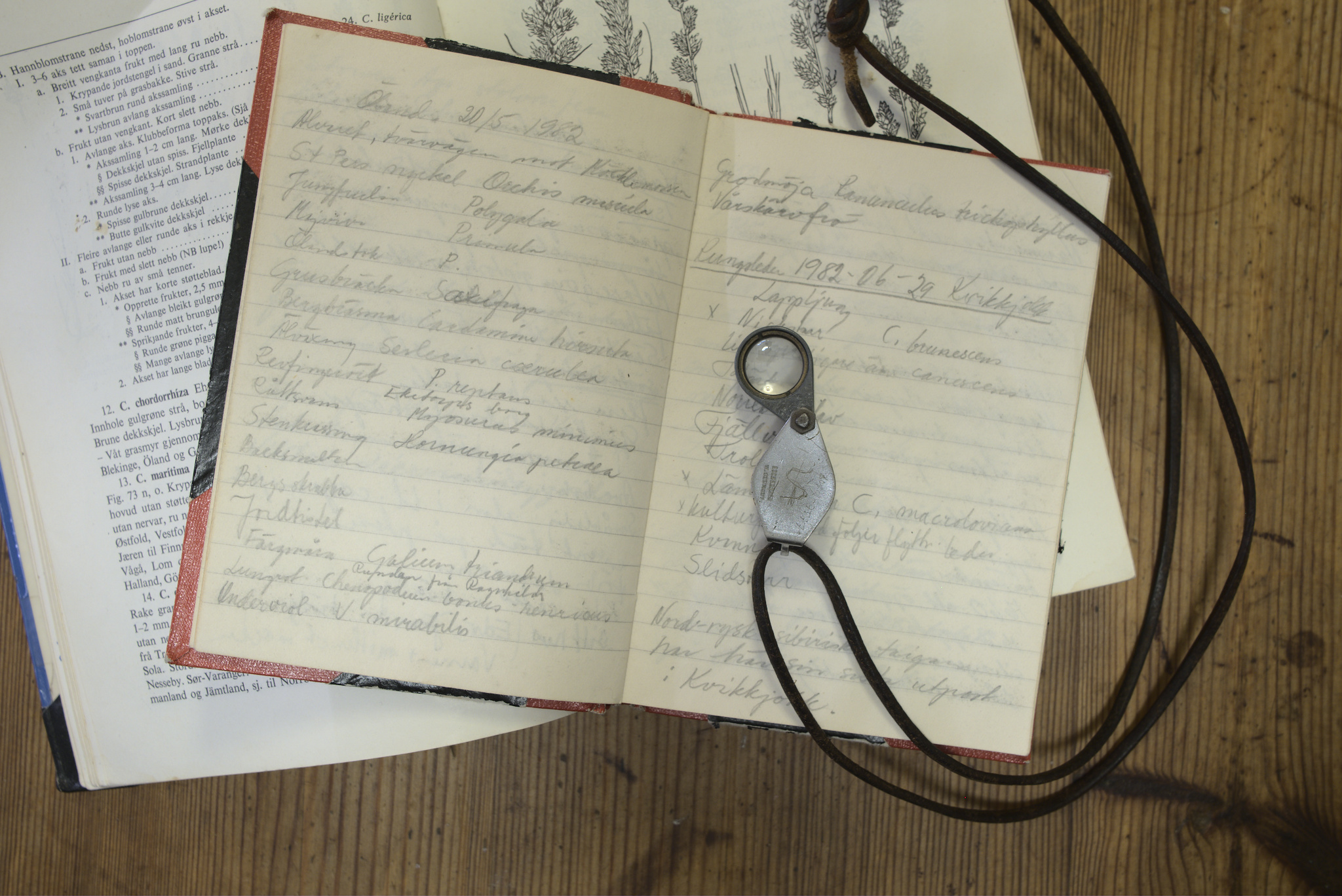 I slutet på juni samma år åkte Rut upp till Kvikkjokk på en botanikresa där inventeringsjobb varvades med kvällsföreläsningar och gemensamma artbestämningar. Jag förstår av noteringarna i anteckningsboken hur hon njöt av att vara en del av arbetet med att ta fram en Lapplandsflora. Här finns många utropstecken i texterna och noggranna anteckningar från kvällsföreläsningar av arrangörerna.