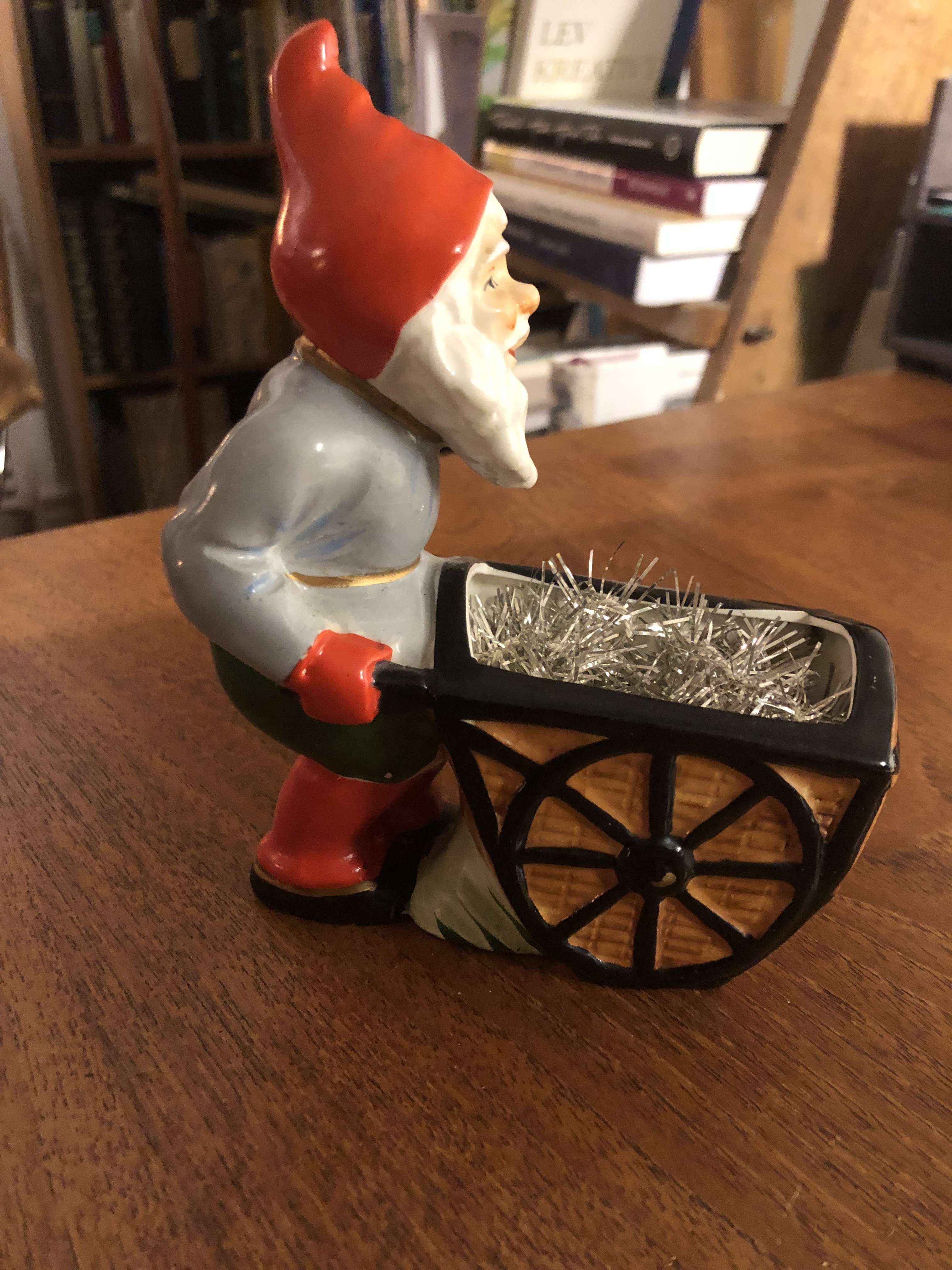 Julen är minnenas helg. Minns den fina polisbilen jag fick av min mormor. Kördes på batterier och kunde tuta. Tutade högt och gällt. När mormor åkt hem försvann batterierna. En julaftonsmorgon fick jag en liten tavla till mitt dockskåp som jag blev väldigt glad åt. Men finaste presenten kom från hembiträdet Anita som gav mig en porslinstomte. Den har jag kvar ännu.
